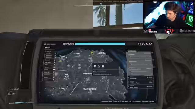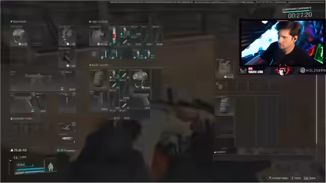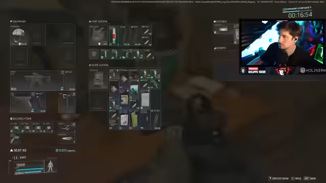 01:08:47In den ersten Spielminuten zeigt sich das komplexeste Feature: das Hideout-Management. Der Streamer platziert eine Weapon Bench im Basisbau, der komplett im Spiel verankert ist - kein abstraktes Menü, sondern physisches Bauen mit Energiekosten. Parallel dazu demonstriert er das Health-System mit Blutung, Knochenbrüchen und Heilung. Das Extraktions-System funktioniert über Drohnen, die Gegenstände vorzeitig aus dem Kampfgebiet bringen, während der Streamer die erste Mission erfolgreich mit einem Extract an einem Wormhole beendet.