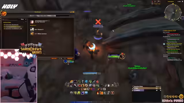 06:42:46Nachdem die Mondstalker-Quest endlich abgeschlossen ist, rücken die Spieler dem nächsten Ziel näher: dem World Buff in Booty Bay. Der Co-Player warnt vor der Zeitknappheit des Buffs und schlägt vor, sich in Stormwind zu treffen. Die Streamerin, die sich zuvor im Kampf mehrmals sterben musste, zeigt Entschlossenheit und optimiert ihren Inventarplatz. Das Duo plant den Weg zum Zielort, wobei der Zeitdruck und die Notwendigkeit eines effizienten Transports im Vordergrund stehen.