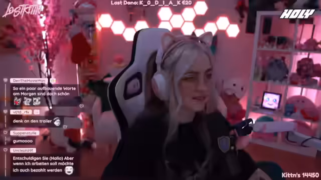 10:12:48Die Katze der Streamerin ist im Hintergrund aktiv und verursacht Chaos, indem sie den Router schiebt und sich auf der Tastatur setzt. Der Chat interagiert stark mit der Katze und Bodyshaming wird thematisiert. Die Streamerin zeigt Bilder ihrer Katze und stellt fest, dass sich ihre Prioritäten von Selfies zu Katzenbildern verschoben haben. Sie beendet den Stream mit Dank an die Viewer und kündigt den nächsten Tag für morgen an.
