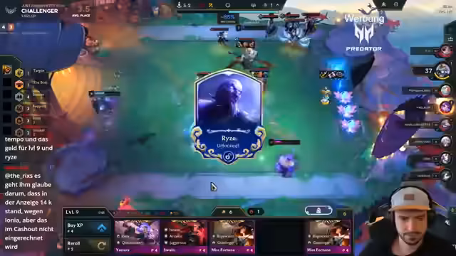03:03:21Ein Shadow-Eyed-Spot wurde verspätet erkannt, weshalb der Streamer in einen anderen Spieler hineingerutscht ist. Die verfügbaren Alternativen waren nicht zufriedenstellend. Ein geplanter High Roll mit Taric, der bereits in der dritten Stufe hätte stattfinden sollen, wurde nicht umgesetzt. Die Level-6-Push-Strategie war falsch, was zum Verlust führte. Ein früher Stufenaufstieg auf Level 5 wäre die richtige Entscheidung gewesen, um das Spiel zu stabilisieren. Der Streamer hat den Eindruck, dass er gegen andere Shadow-Rage-Spieler F verloren hat, und vermutet einen Bug bei einem Seer-Treffer.