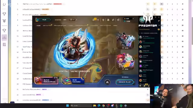 01:28:55Die Streamer analysieren aktuelle Lobbys und Build-Entscheidungen. So wird eine starke Kochung mit viel HP-Vorsprung und 10er Winstreak als sehr stark eingestuft. Bei einem Spieler wird der Aufbau eines Duo-Carry-Teams mit Renekton und Shyvana sowie Rageblade für Kindred diskutiert, wobei die Unsicherheit über den Haupt-Carry thematisiert wird. Ein anderer Spieler baut Items für Vayne und Kaiser, was als zu schwache Frontline bewertet wird, während ein Gegner mit Shadowgreen stark wird.