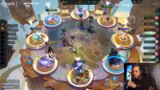 04:12:11Nach einer Pause startet eine neue Lobby für die TFT Open Dachmeisterschaft. Eine Influencer-Teilnehmerin, Tussaudis, scheidet unranket aus, nachdem sie mit 'Legions of Three' experimentierte. Der Streamer begrüßt neue Teilnehmer wie Micha und unterhält sich über die Herausforderungen des Castings auf einer Messe mit mehr als 1000 Zuschauern.