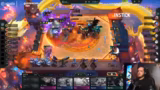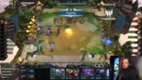 01:35:25Ein Spieler baut Invoker Aurelion mit zusätzlichem Azreal für extra AP, was als 'dicker Eierplay' und extrem stark für die Endphase beschrieben wird. Die Lobby ist komplett am Kochen. Ein Gegner, Nasus, wird freigespielt, nachdem Bucky verliert. Ein Spieler baut Spirit Visage auf Renekton, was ihn am Leben erhält, auch wenn er sich nicht bewegen kann. Der Einsatz von Meteoren durch einen Spieler wird als entscheidend für den Sieg beschrieben, da er massive Schaden verursacht.