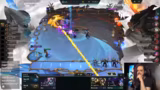 03:55:43Ein Kampf findet statt, bei dem ein Fizz die gegnerische Jinx attackiert, aber letztendlich gegen Tristana und Senna verliert. Der Spieler Brücki wird mit dem sechsten Platz ausgeschieden, was ein frühzeitiges Ende bedeutet. Das Spielfeld ist chaotisch, mit einigen Spielern, die gute Plätze erreichen, während andere wie Samuel und Völkir knapp den sechsten verpassen.
