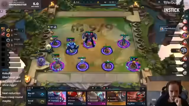 02:56:16Der Fokus liegt darauf, in die Grandmaster-Ränge aufzusteigen und sich für die TFT-Europameisterschaft zu qualifizieren. Der Kommentator analysiert seine aktuelle Lobby-Leistung, die stark schwankt – von Top-1-Platzierungen bis zu mittelmäßigen Ergebnissen. Trotz der frustrierenden Elo-Verlusten betont er, dass er auf dem Niveau der 900-AP-Lobbys mithalten kann und sein Potenzial als 'Challenger' sieht, wenn er mehr Zeit für den Grind hätte.