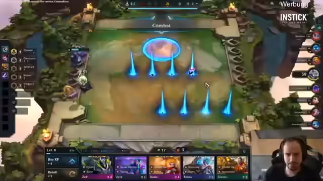 00:15:47Der Streamer schildert die Ergebnisse einzelner Runden. In einer Runde erreicht er trotz eines 10er Winstreaks nur den fünften Platz, da er aufgrund fehlender Items wie eines zweiten Rageblades nicht gegen einen starken Galio gewinnen konnte. Eine andere Runde gewinnt er knapp, nachdem er eine starke Cypher-Comp gespielt hat, während ein Gegner durch ein schlechteres Roll verliert. Es zeigt sich, dass selbst bei guter Platzierung am Ende oft ein gewisses Glück bei der Itemverteilung nötig ist, um die Top 4 zu erreichen und LP zu sichern.