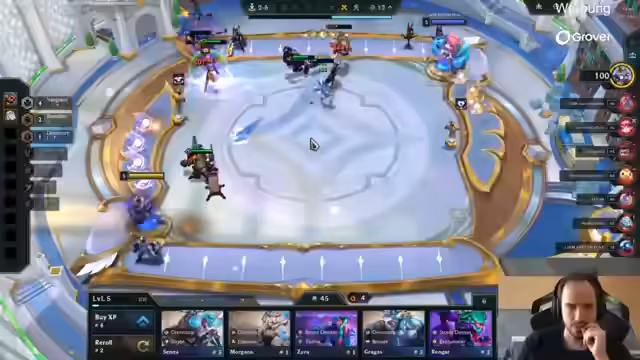 02:05:50Der Stream konzentriert sich auf die Entwicklung komplexer TFT-Kompositionen, insbesondere um eine Sekko-Variante mit den Einheiten Galio, Elise und Garen zu bauen. Der Kommentator analysiert die Herausforderungen bei der Itemverteilung, die Notwendigkeit von Rollenwechseln und die strategischen Überlegungen, warum bestimmte Items auf spezifische Champions wie Annie oder Yuumi besser sind. Der Fokus liegt auf der ständigen Anpassung des Boards, um einem starken Cypher-Spieler standzuhalten und die eigenen Einheiten zu optimieren.