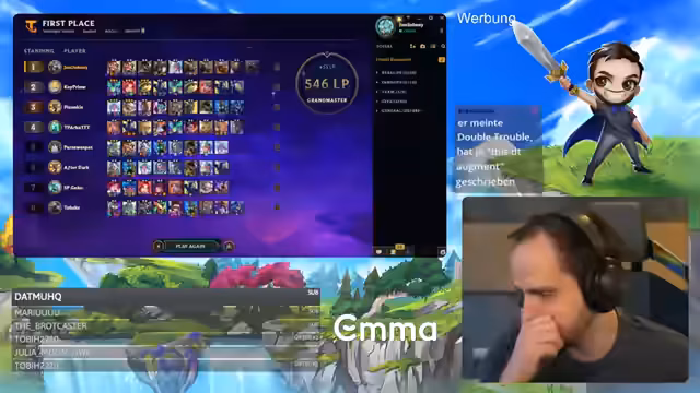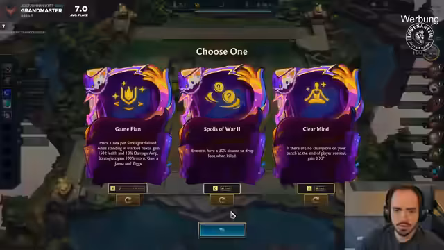 00:00:48Nach dem Willkommen der Zuschauer eröffnet der Streamer den Stream und gibt einen Einblick in die aktuelle Meta von TFT. Er identifiziert als dominante Strategien ein Double-Trobbled-Miles-A, ein Fast-Nine mit viel Gold und Vorkost-Backup-Lines. Außerdem äußert er die Vermutung, dass Juggernauts möglicherweise zu selten gespielt werden. Der Streamer plant, ein Game mit dem ST-Artefakt-Kog'Maw zu beginnen.