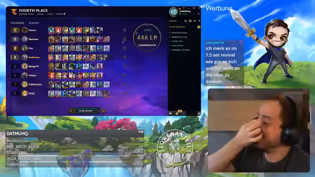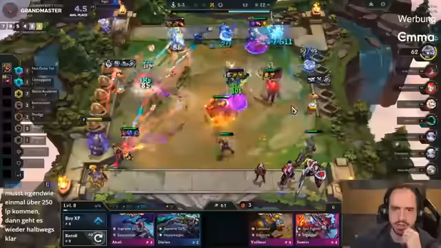 00:37:24Der Streamer beklagt die Schwierigkeit, in der aktuellen 1000-LP-Lobby entspannte Spiele zu finden, da gegen Ende des Sets hauptsächlich Hardcore-Spieler aktiv sind. Es wird erwähnt, dass Teamfight Tactics das zweitmeistgespielte Riot-Game ist, was die große Spielerbasis unterstreicht. Im höchsten Elo-Bereich setzen die Spieler jedoch irgendwann andere Prioritäten, was zu einem Burnout führen kann. Eine enttäuschende Ankündigung betrifft die Schwierigkeit, ein neues Set-Video in gewohnter Qualität aufzunehmen, da es unter NDA steht und die Informationen eine solche Produktion erschweren. Die Season läuft noch bis zum 3. Dezember, was den Spielern Zeit gibt, ihre Ziele zu erreichen. Die Frage, ob ein Mech als Champion zählt, wird verneint, da er explizit als Unit und nicht als Champion definiert ist. Die Frustration über das Nicht-Erreichen einer Win-Streak trotz guter Ansätze und die als schlecht empfundenen Items werden deutlich. Die Diskussion über die Notwendigkeit von Remover-Items in der späten Phase und die Chancenlosigkeit gegen bestimmte Bot-Builds zeigt die Komplexität des Spiels.