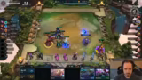 00:13:51Der Streamer analysiert die Double-Trouble-Variante, bei der durch das Restarten von Einheiten Kopien erhalten werden. Er äußert die Ansicht, dass der Einsatz dieser Strategie für eine 4-Cost-Einheit ungewöhnlich sei und eher als Tempo-Out in Erwägung gezogen werden sollte. In Bezug auf die Items wird eine Diskussion geführt, ob Steraks für den Darius priorisiert werden sollte oder ob Fokus auf Ramos-Items gelegt werden muss, um eine ausreichende Schadensausgabe zu gewährleisten.