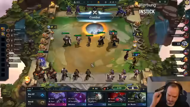 00:06:41Der Streamer analysiert laufende Fights und seine ungewöhnliche Komposition. Er diskutiert die Notwendigkeit, auf Level 4 zu bleiben oder zu leveln, und verwaltet seine Wirtschaft mit Draven für Winstreaks. Trotz fehlender Frontline plant er 3-Cost-Reroll und optimiert Ressourcen, während er Nautilus und Gangplank-Upgrade anstrebt. Er erwähnt BronzefürLeben-Strategie und QSS-Umleitung auf Gangplank, ist aber unsicher über Roll-Entscheidungen bei begrenztem Gold.