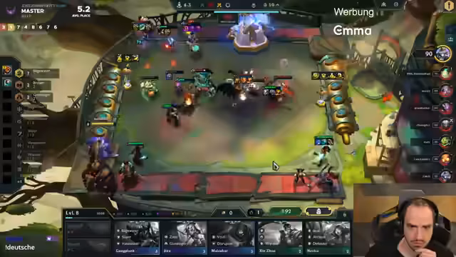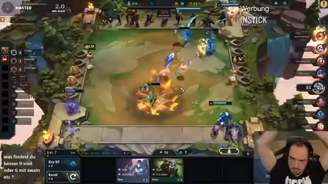 00:00:07Der Streamer begrüßt die Zuschauer und erwähnt seine Müdigkeit. Er ist im Ladder-Race aktiv und aktualisiert seine Position (7. Platz). Er diskutiert Strategien wie Barth-Reroll, entscheidet sich aber dagegen aufgrund mangelnder Erfahrung. Nach einem Arbeitstag startet er mit Aphelios und Bow-Start, kauft Graves auf Verdacht, bemerkt aber eine schwache Frontline. Das Ziel ist es, den Cut auf Platz 11 zu schaffen, während er gegen Taric-Spieler kämpft und Double Bow für Rage Black Kraken plant, obwohl er Bilgewater-Reroll eigentlich vermeidet.