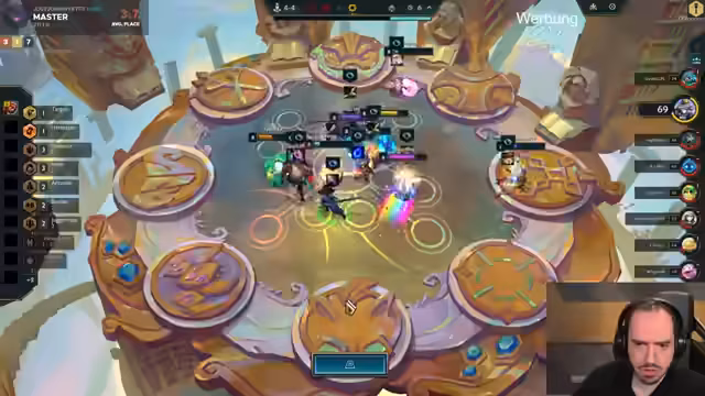 01:30:18Der Streamer erklärt Turnierformate: Snake Seating mischt Ranks (Challenger mit Master/Emerald), während Swiss Seating gleichstarke Gegner setzt. Als Top-100-Spieler Europas stellt er fest, dass Lobbys jetzt härter sind, da Profis wie die Paris-Jungs fehlen. Er beginnt ein neues Spiel mit schwierigen Startunits (AP-focused), vermeidet Void-Reroll aufgrund von Contesting und diskutiert die Flexibilität von AD vs. AP-Kompositionen in aktuellen Metas.
