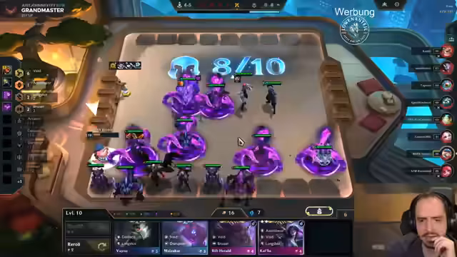 02:11:35Mit nur noch drei Partien bis zum Meistertitel intensiviert sich der Wettbewerb. Die Spieler nutzen verschiedene Augmente wie 'Birthday Reunion' für frühe 2-Star-Legendaries (z.B. Vi oder Tristana) oder 'Gold Destiny' für Warlords Honor. Banana Bill pivotet erfolgreich in Void mit Wukong/Swain-Combos, während Coinit mit Bruiser-Emblem und einem starken Board (Caitlyn, Blitzcrank 2, Chogath 2) punktet. Spektakuläre Momente dominieren: Ein Weiger erreicht durch Passive und Rabadons-Stacks absurd hohe 633 AP, verliert aber trotzdem gegen Coinits überlegenes Board. Van Terka und Salvi kämpfen ums Überleben mit Ionia-7-Boards und riskanten Entscheidungen.