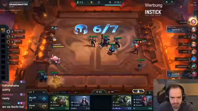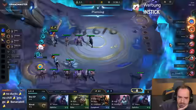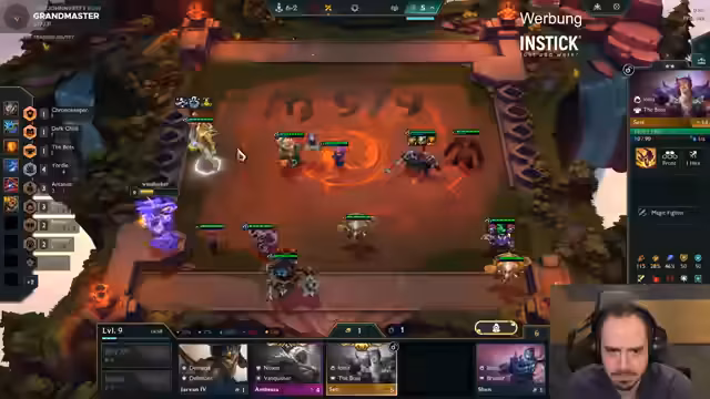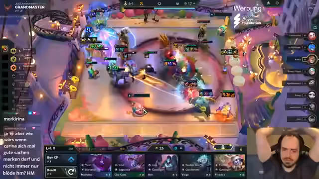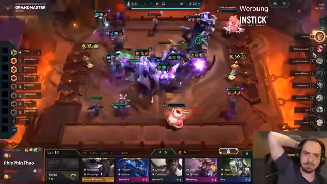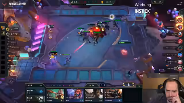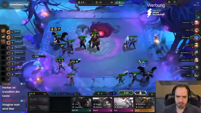 03:03:04Coinit trifft entscheidende Upgrades wie Briar und Leona für Anti-Heal, riskiert aber einen frühen Level-Push auf 6. Banana Bill kämpft mit Bronze-for-Life-Strategie und scheitert kurzzeitig beim Finden von Junara, rettet sich aber knapp. Yamato optimiert sein Board mit Speedy Double Kill und Azir 2, während Topson mit 8-Yordle-Skalierung auf Sidious hofft. In spektakulären Fights besiegt Yamato den Baron und setzt sich gegen Coinit durch, was die Tabellenführung übernimmt. Trotz technischer Herausforderungen wie Spectator-Delays bleibt die Spannung hoch, da jede Runde die Platzierungen drastisch verändern kann.