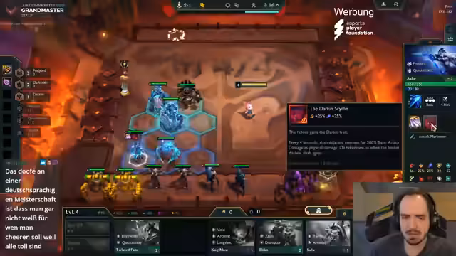 00:03:57Die volle Teilnehmerliste wird vorgestellt, darunter Coinit als österreichischer Vertreter. Der Streamer betont die Bedeutung der TPC-Spieler für das Turnier und lobt deren Integration. Ein Beispielboard von Coinit wird analysiert, das auf Bruiser mit Draven setzt. Es folgen Überlegungen zu Item-Optimierung, etwa der Einsatz von 'Unsealed from Steel' für bessere Waffenfreischaltungen. Statistiken zu Darkened-Items auf Trindermear und Yasuo werden diskutiert, ebenso wie die Wahl von Augmenten wie 'Lifting Competition' für zusätzliche Ressourcen.