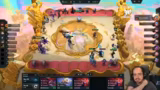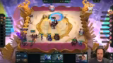 00:50:18Im ersten Game dominiert ein Spieler namens Reuneth, der durch effektives Positionieren der Kindred den Kampf gewinnt. Ein anderer Spieler, Ringo, versucht unkonventionell, einen Rammus 3 zu beschaffen und konzentriert sich auf das Head-to-Head-Duell gegen Maybe-One, um den zweiten Platz zu sichern. Ein Schlüsselmoment ist der Erwerb von Karmas auf der Pandora's Bench, um eine Free Star 4-Cost zu ermöglichen. Coinet, ein Top-Spieler, gewinnt trotz eines starken Gegners und sichert sich den ersten Platz, was als hervorragender Start in das Turnier bewertet wird.
