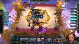 01:23:46Ein dramatischer Kampf wird durch die extreme Tank-Upgrades eines Spielers entschieden. Ein Miligraf erhält massive Boni wie 40% mehr Gesundheit und einen Schild. Er kann lange standhalten und gewinnt letztlich den Kampf. Auf der Gegenseite hat Coinet das 'Echo'-Götter- Augment zweimal gewählt. Dafür erhält er als Belohnung am Ende der Stage 4 einen 'Echo'-Boom, der seinen Maokai-Tank um 1100 Gesundheit und Größe verstärkt.这使得他的阵容在后期拥有了极强的坦度。