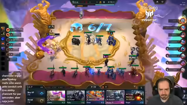 00:29:43Im späten Spiel steigt die Bedeutung von Traits, die Utility- und Effekt-Auren bringen, um ein Board auf Level 9 flexibel zu gestalten. Champions wie Kindred und Shen werden als Auren-Spender hervorgehoben, die das gesamte Team stärken. Coinit entscheidet sich für den Übergang auf Level 9 und plant, Fiora zu einer 5-Star-Einheit zu upgraden. Der Streamer wertet den Spielverlauf aus und kommt zu dem Schluss, dass die Kombination stark ist, jedoch durch massive Tanks der Gegner gefährdet sein kann.