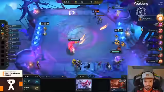 02:57:16Die Lobby wird als sehr eng und dynamisch beschrieben, wo das Matchmaking über Sieg oder Niederlage entscheiden kann. Zwei deutsche Vertreter, Broken und Yamato, haben trotz unterschiedlichster Stärken und Schwächen eine Top-4-Platzierung erreicht. Yamatos überaus erfolgreicher Draven-3-Build mit spezifischen Augments wird als 'krass' bewertet, während Yamato zugleich das Problem hat, dass seine Zyra-3 im späteren Spielverlauf unspielbar wird. Die Lobby-Dynamik führt dazu, dass sich die Top-Spieler gegenseitig nicht greifen, um ihre Gewinnserien nicht zu gefährden.