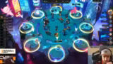 00:47:39Das zweite Spiel der EM-Quali beginnt, erneut mit den drei deutschen Spielern. Die Streamer und Nomi diskutieren die aktuelle Meta. Es zeigt sich, dass Builds wie Exotec und Vayne stark sind, aber stark von bestimmten Augments wie Board of Directors oder Hurricane abhängen. Die Stimmung in der Lobby ist weiterhin extrem angespannt, da viele Spieler wie Lele und Ernest Kiag den Loose-Streak-Cypher spielen. Die Startphase wird als sehr chaotisch beschrieben, da jeder versucht, seinen Gegner zu griefern, um im Karussell einen Vorteil zu erzielen.