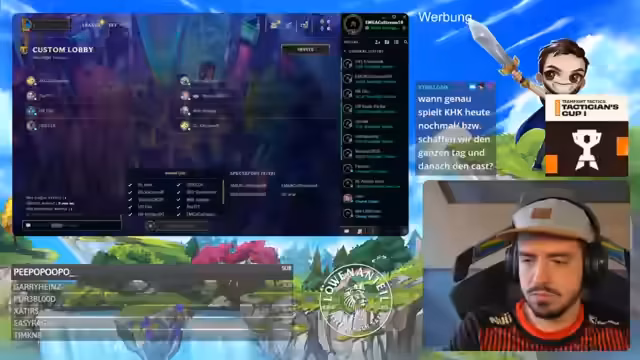 00:00:00Der Stream beginnt mit Begrüßungen und technischen Abstimmungen. Der Streamer kündigt die Inhalte des heutigen Abends an: Zuerst findet die erste Runde der TFT-EM-Qualifikation statt, gefolgt von einem League of Legends-Cast. Zudem erwähnt er, dass er die Nacht über auf Grandmaster-Rank in TFT spielen wird. Wichtig ist die Ankündigung, dass die Highlights der EM-Quali im Wechsel auf seinem Haupt- und Drittkanal veröffentlicht werden, da es bisher keine zufriedenstellende Lösung für alle Zuschauer gab.
