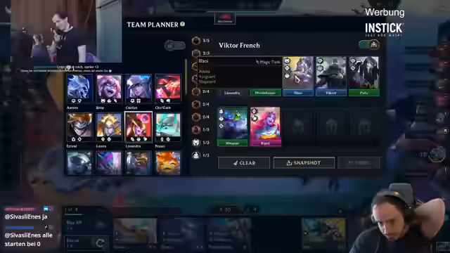 00:00:00Der Streamer beginnt mit einem Live-Stream, bei dem er sich über das neue Set hyped. Er erwähnt, dass er ein Boxboxbootcamp durchführt und über 400 Teilnehmer erwartet. In den ersten Spielen konzentriert er sich auf verschiedene Champions und Items wie Rageblade, Vex, Graves und LeBlanc. Er zeigt eine starke Präsenz im Chat und interagiert mit den Zuschauern. Er auch auf technische Probleme während des Streams.