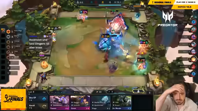 04:57:12Die Meta des aktuellen Patches wurde als Peak Cinema bezeichnet, da sie sehr viel Spaß mache. Viele veränderte Mechaniken führen zu unterschiedlichen Spielstilen. Es wurden diverse Kompositionen wie Fast-9-Comps, die auf Level 8 rollen, und Demacia-Lines gespielt. Trend Reroll und Echo Reroll wurden in den Statistiken gesehen, aber selten im praktischen Spiel eingesetzt. Dies könnte daran liegen, dass sie an Artefakte gebunden sind oder einfach noch nicht voll ausgeschöpft sind.