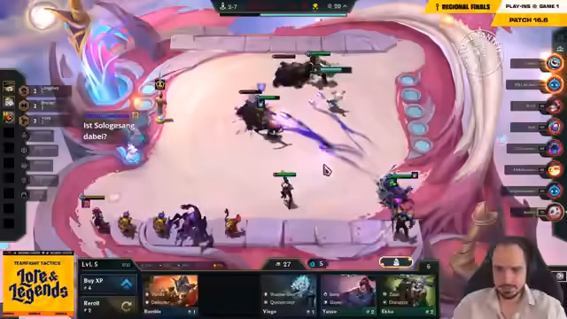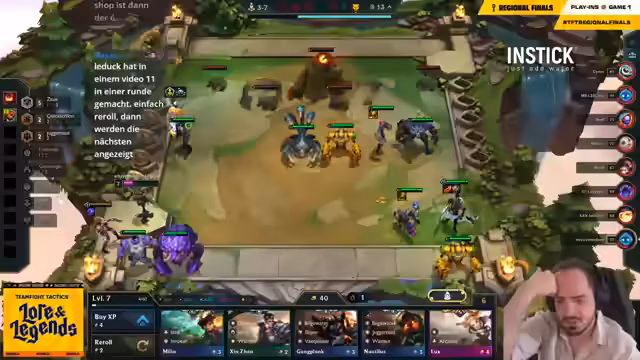 04:02:44Noël kämpft sich durch eine volatile Midgame-Phase und nutzt einen Boardfight, um zu topieren. Nach einer knappen Stage 5 entscheidet er sich für einen Noëls Boardfight. Die Analyse zeigt, dass er anfangs stark aussah, aber durch zufällige Stage-Verluste in Bedrängnis geriet. Trotz des Risikos, hält er durch und eliminiert seinen Gegner mit einem klaren Sieg, was ihm wichtige Punkte sichert. Der Sieg verdankt er strategischen Item-Builds und einer soliden Frontline mit Einheiten wie Lux und Xerath.