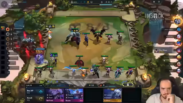 05:03:35Nach der Turnierbesprechung ging es in eine Spielsession, in der verschiedene Kompositionen getestet wurden. Eine erfolgreiche Strategie war der Noxus-Aufbau mit Draven und Atakan. Es wurde viel über das Contesten von Einheiten, wie zum Beispiel den Briar, diskutiert. Am Ende wurde eine Noxus-7-Komposition gespielt, die zwar stark war, aber zu viel Ressourcen kostete. Ein großer Fokus lag auf dem Management von Gold und HP, um in den späten Phasen stabil zu bleiben.