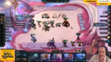 00:46:51Die Lobby-Kämpfe intensivieren sich. Burai führt mit einem unkonventionellen Board, dasTransitionen zeigt, während YUMedPro und Narkis in ein Duell verwickelt sind. YUMedPro kämpft mit nur 13 HP in Stage 5 und zeigt beeindruckende Heilung. Narkis profitiert von einem Edge of Night auf dem Kopf. Parallel dazu wird die Turnierstruktur erklärt: Top 4 qualifizieren sich direkt, die Plätze 5 bis 12 spielen in einer separaten Lobby um die restlichen Plätze.