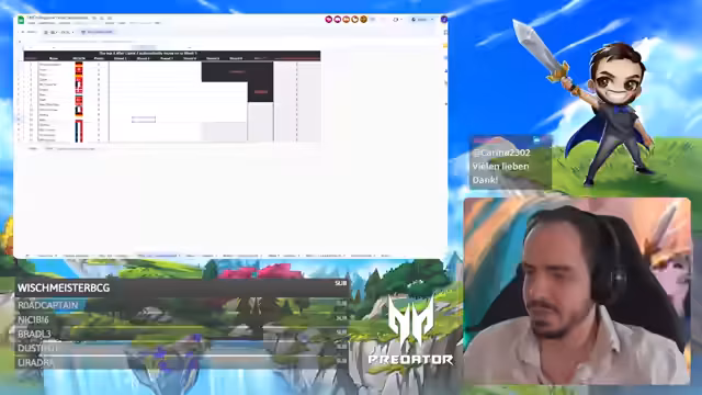01:57:59Das Turnier startet mit 16 Teilnehmern, von denen 8 weiterkommen. Die drei deutschen Spieler, Narkis, WarYouMadePro und Voss, sind alle im Rennen. Voss, einst ein Unbekannter, hat mit einem achten Platz begonnen, sich aber mental neu aufgerichtet und einen starken zweiten Platz geholt. Nach vier Runden qualifizieren sich die Top 4 direkt für den zweiten Tag. Aktuell ist Narkis qualifiziert und Voss punktgleich mit dem vierten Platz, was die Spannung erhöht.