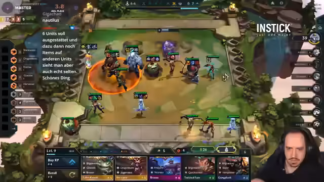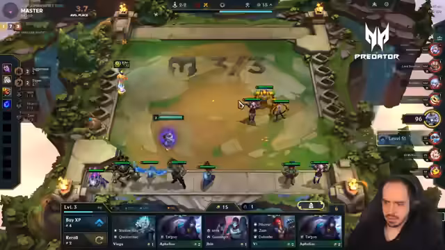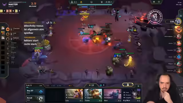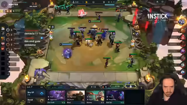 00:00:02Der Streamer begrüßt seine Zuschauer nach kurzer Abwesenheit und kündigt an, direkt wieder in das Spielgeschehen einzusteigen. Die ersten Runden werden mit einem Ionia-Opening gespielt, um von XP-Boni zu profitieren. Der Streamer experimentiert mit verschiedenen Kombinationen und Items, ist aber mit dem Startsetup unzufrieden und überlegt, in eine andere Fraktion zu wechseln. Trotzdem gelingt es ihm, einige Siege und Platzierungen im Mittelfeld zu erzielen.
