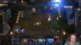 02:55:23Das Spiel gegen den Top-4-Gegner verläuft extrem knapp und emotional. Eine zentrale Rolle spielt der Streamers Echo-Build mit seiner Helden-Nidalee. Die Idee ist, das Leben von Nidalee mit Edge of Night zu schützen, damit sie nicht fokussiert wird. In einem dramatischen Kampf überlebt Nidalee das Edge-of-Night-Item nicht, was der Streamer auf eine späte Applikation des Items zurückführt. Obwohl er das Spiel knapp gewinnt, sieht er in dem verpassten Edge-of-Night-Apply einen strategischen Fehler und macht sich selbst Vorwürfe für seine Entscheidungen im Trades-Sektor, die nicht optimal waren.