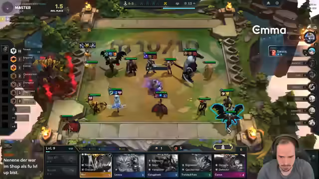 02:02:40Das Spiel verläuft chaotisch, und der Streamer sieht sich mit dem Problem konfrontiert, keinen passenden Darius für das Noxus-Setup finden zu können. Durch ein schnelles Nachkaufen von Leblanc und den Verkauf von Silian wird das Budget für Darius gesichert. Dieser taktische Tausch stellt sich als entscheidend heraus. Letztendlich gelingt es, einen Fiddlesticks zu stun und so den knapp gewonnenen Fight ins Ziel zu bringen, was den Top-4-Placement sichert.