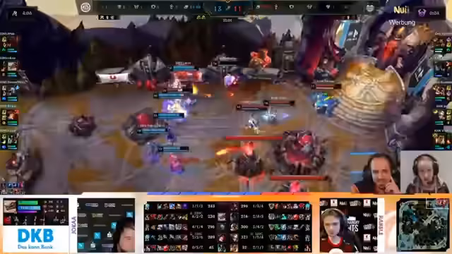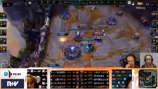 02:21:33Es wurde erwartet, dass Kaufland Hangry Knights Top-Lane-Priorität haben wird. Die Frage war, wie gut die Bot-Lane von Estuary Raider zurechtkommen würde. Es wurde spekuliert, dass Rebel mit Maokai im Jungle viel Verantwortung trägt und dass REL für Engage-Potenzial wichtig ist. Es wurde angemerkt, dass Pink Spikes bei Eintracht Spandau auftreten. Es wurde über die möglichen Ursachen für die Ping-Spikes diskutiert. Es wurde festgestellt, dass Tristan bei Eintracht Spandau gestresst aussieht, während Lilips Cam eingefroren war. Es wurde vermutet, dass Jessica von Eintracht Spandau im Dunkeln spielt, um sich besser konzentrieren zu können. Es wurde über die Häufigkeit der Casts des Streamers gesprochen. Es gab eine Diskussion über die Farbgebung im Stream während der Pause. Es wurde über die Pausenregeln und mögliche Ausnahmen diskutiert. Das Spiel begann mit einem CleanFeed ohne Ton, der jedoch schnell behoben wurde. Es wurde festgestellt, dass die Hangry Nights in der Tabelle einen Punkt vor Eintracht Spandau liegen und dass Eintracht Spandau in einem Formtief steckt. Random erzielte das First Blood für Kaufland Hangry Knights. Die Botlane von Miss Fortune und Karma sollte Priorität genießen. Prokki hatte Probleme, die Miniwave zu betreten. Es wurde festgestellt, dass die REL die vermeintliche Pryo von Lillip und Bröki matchen kann. Rebel wird voraussichtlich nach oben peffen und die Krabbe holen.