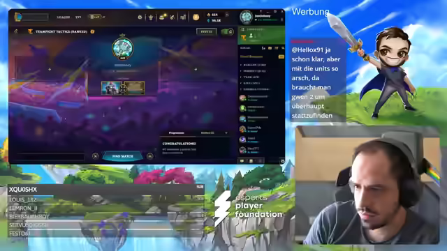 01:46:54Der Streamer stellt fest, dass das nächste fast ein fünftel getroffen hätte und Jumi es überlebt hat. Der Christian mit sieben Spieler wird natürlich irgendwann einfach zu stark sein. Er wollte seinen Remover noch nicht einsetzen, aber in der Theorie hätte er jetzt natürlich die besseren Tank-Items auf das Anti machen können und Clarknesslayer auf ihn zocken können. Der Streamer hat keinen Anti hier gegen den Starga, den Spieler. Er stellt fest, dass es nicht gesund ist, zu facen. Mit Seraphine Two-Star hatten sie eigentlich eine Chance gehabt. Es wird überlegt, ob das besser ist. Der Streamer rennt damit Unstoppable einfach durch. Seine Leona ist hinten auf die Senna gelaufen. Der Streamer hat den Prozession-mäßig verarscht. Wenn dann seine Yuumi nicht von der Leona betrayt wird, dann gewinnen sie das da. Der Streamer findet die Runde cool und nimmt sie mit. Er verabschiedet sich und kündigt an, die Cam jetzt wieder auszumachen. Er fand Unstoppable trotzdem eine schöne Idee. Die nächsten Turniere findet man immer unter Social Media. Heute ab 16 Uhr castet No MIDI Trials. Nächstes Wochenende gibt es dann die EM-Qualifikation. Der Streamer will wenigstens den Start der Formel 1 sehen und bittet darum, nicht zu spoilern.