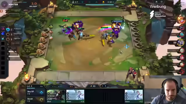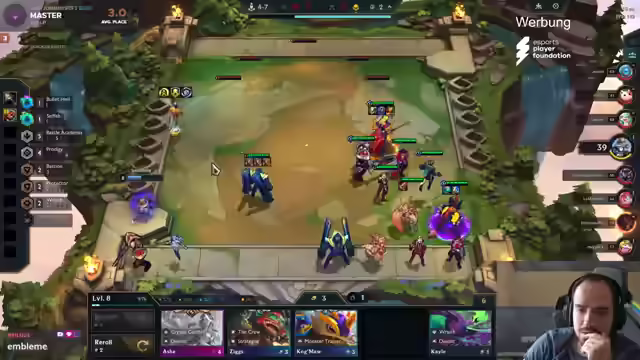 01:31:21Der Streamer überlegt, ob die Caitlyn etwas machen darf und stellt fest, dass 52 AP voll okay sind. Er kann sich die Caitlyn eigentlich nicht leisten. Es folgt ein 4-1 Rolldown. Der Streamer hat keinen Rakan auf dem Board. Es ist immer MR auf Leona hier. Die Träne könnte auch auf Malza gehen. Prology Fibber war extrem stable, weil man halt eilt, ne, für den Damage, den die Units machen. Der Streamer würde natürlich ein Thema Spiel neunmal gewinnen. Er kann Garen daneben stellen, weil er 1,20 Stacks hat. Es wird überlegt, ob man hier gar nicht unbedingt spreaden muss, aber der Kiss passt. Der Streamer ist nicht mehr so ein Fan von Bulleteil. Supergenius fühlt sich so viel besser an. Er hat die ganze Zeit ohne seinen Battle-Academy-Upgrade gespielt. Der Streamer hat immer noch nicht die nötigen Anzahlen-Fights gewonnen. Er haut sofort den Dupe drauf. Das ist seine vierte Three-Star-Unit. Der Jarren soll nicht seine Yuumi holten. Es wird überlegt, ob man Level 10 machen soll. Der Akademie 7 wird auch nochmal shuddern. Der Golem muss damage machen. Es ist nicht close.