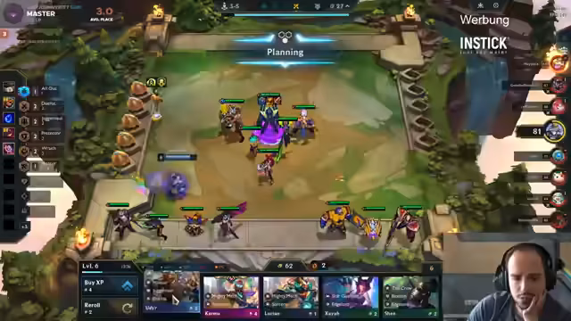 00:00:00Der Streamer startet mit der Analyse seiner Anfangsphasen in Stage 2. Er thematisiert, dass seine Performance zwar nicht schlecht war, aber die Wahl der Kombination 'Soulfighter' eine zentrale Rolle spielt. Nach mehreren verlorenen Runden kritisiert er die Qualität der Power-Ups, insbesondere 'Crowngar' und 'Shadow Clone', die als 'schlecht' oder 'arsch' eingestuft werden. Trotzdem bleibt er bei seiner Strategie und fokussiert darauf, Units wie 'Volibear', 'Lucador' und 'Vigor Duelist' zu integrieren, um eine stabile Kombination aufzubauen.