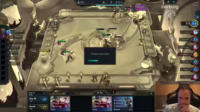 04:06:03Der Streamer sprach über den Erhalt von Explosive Growth und die Notwendigkeit zu rollen, um das Spiel zu stabilisieren. Es wurde die Frage aufgeworfen, ob die aktuelle Strategie ausreicht, und zusätzliche Goldressourcen wurden identifiziert. Der Plan, in Runde 4-2 zu rollen, wurde angesprochen, ebenso wie die Tatsache, dass ein Gegner bereits Level 8 erreicht hat und uneinholbar ist. Verschiedene strategische Überlegungen wurden angestellt, darunter der Einsatz von Einheiten wie Ahrige und die Notwendigkeit, sich gegen Yasuo 3 zu positionieren. Es wurde die Bedeutung von Spirit Link in Kombination mit Titanic hervorgehoben, um fehlende Gesundheit zu kompensieren und mehr Health Rack zu erhalten. Es wurden Überlegungen angestellt, wie man gegen burstlastige Builds vorgehen kann und wie der Lucian mit seinem Archangel den Rakan überwinden könnte. Der Erhalt von drei Gold wurde als positiv bewertet, und die Herausforderung durch Tiny Titans im Turnier wurde anerkannt. Es folgte eine Analyse möglicher Fehler, wie das zu späte Rollen für Protektoren, was etwa 15 Gold gekostet haben könnte, sowie das Versäumnis, Starex frühzeitig zu slammen.