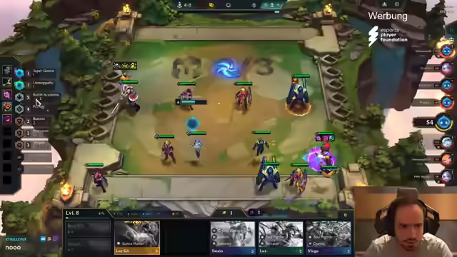 01:51:35Der Streamer diskutiert verschiedene taktische Optionen für Enzo im Mid- bis Late-Game, einschließlich des Rollens auf Level 9 für mögliche Yuumi 3, Milsa 3 oder Seraphine 2, anstatt auf Level 10 zu gehen. Er betont, wie entscheidend ein zusätzlicher Cast von Yumi sein kann, um mehrere Champions auszuschalten, und warnt gleichzeitig vor den Aktionen von Coinet. Es wird die Bedeutung von Anti-Heal hervorgehoben, insbesondere im Hinblick auf die Creep-Runde. Der Streamer analysiert die potenziellen Auswirkungen von Zyra 2 und Seraphine 2 auf Enzos Board und die Notwendigkeit, Items zu wechseln. Er beobachtet, wie Coinet von unten nach oben spielt, während Enzo Schwierigkeiten hat, ein Winning Board zu finden, und schließlich Seraphine und Zyra trifft. Die Tech in Star Guardian wird als völlig unbekannt bezeichnet, was die Augen für die Comp neu öffnet. Coinet wird als jemand beschrieben, der die Meta diktiert, und steht nun bei 42 Punkten.