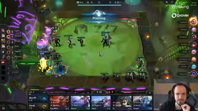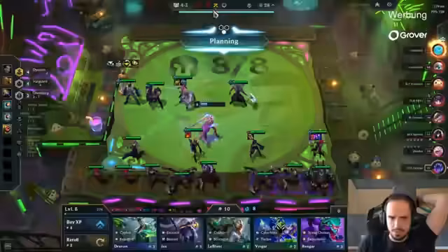 04:32:38Der Kampf zwischen Kilkornes Exo-Tech-Board und einem starken Graves von Summertimeer verläuft knapp. Der Graves scheint durchzugehen, aber Kilkorne kann ihn knapp halten und gewinnt den Kampf, was seine Position sichert. Summertimeer verliert im selben Kampf seine Win-Streak. Dish Soap hat ebenfalls eine Loose-Streak und nutzt dies für eine starke Position. Exotec bleibt eine dominante Synergie in der Lobby, was zu vielen ähnlichen Boards führt. Die Analyse der Boards zeigt, dass Kilkorne mit seinem Exo-Tech-Board gut dasteht, während andere Spieler wie Robinsons zu langsam bei der Itemisierung sind und auf eine Missfortune in der Exo-Tech-Line umstellen müssen.