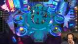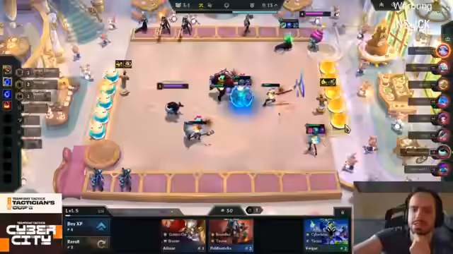 01:58:22Die Beobachtungen wechseln sich zwischen verschiedenen Spielern ab. Bei Fazio wird der frühe Cashout in 3-7 gelobt und der klare Plan einer Comp mit dem Maximilien-Emblem beschrieben. Nilo spielt ein stabiles 10er Street Demon Board, das ihm viele Wins schenkt. Trotzdem ist der Verlust des Fights gegen einen Cyber-Boss-Franchise-Board frustrierend, da sein Board keine Chance hatte und er nur Platz 8 belegte.