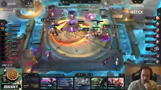 03:16:26Der Streamer experimentiert mit dem Ziel einer Loose Streak, merkt jedoch an, dass dies bei fehlender Scout-Information riskant sein kann. Ein Gegner spielt eine spezifische Komposition mit Story of Seven, was beobachtet wird. Umsetzungsfähigkeit wird in Frage gestellt, da Items als unzureichend empfunden werden. Die Entscheidung wird getroffen, dennoch eine bestimmte Strategie zu verfolgen, um den Gegner zu zwingen, zu delayen.