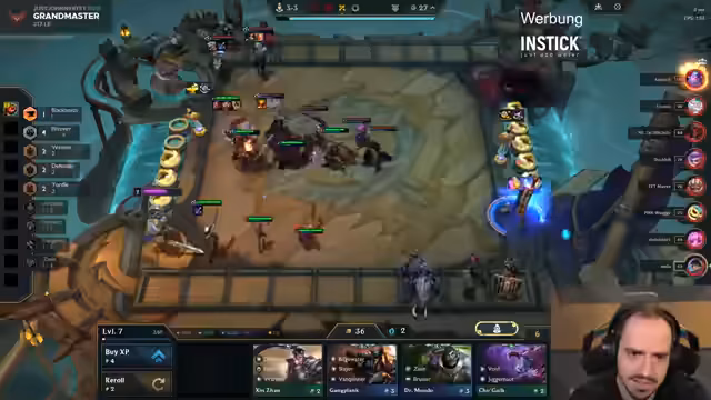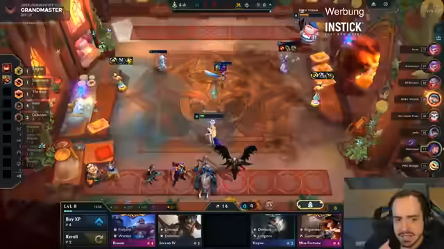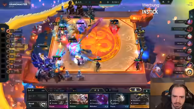 02:06:06Skillfighter überzeugt mit einem extrem starken Sweet-Treats-Setup und Explosive Growth, das ihm Level 10 und hohe Goldreserven ermöglicht. Gleichzeitig zeigt Autark ein Comeback mit Legendary-Units wie Fiddle und Silas. Vega scheitert knapp an seinem Cashout-Ziel, während Nylo durch Jinx 3 einen entscheidenden Vorteil erlangt. Der Abschnitt betont die komplexen Entscheidungen rund um Itemverteilung und Positioning.
