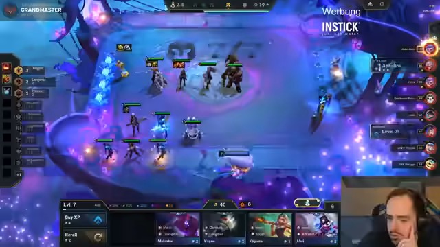 00:31:43In der Endphase setzt sich Nilo mit seiner Void-Komposition durch, unterstützt von Baron Nashor 2 und Wodibär 2. Ferry Deluxe erreicht mit einer flexiblen Set-Line den zweiten Platz, nutzt jedoch nicht optimal Items um. Die Lobby steht unter Druck durch Nilos Board, während Spieler wie Vega (Trindamere 3) und Jitsak (Bilgewater 7) früher ausscheiden. Loros scheitert trotz Lifting-Competition-Strategie an Itemproblemen. Nilos Sieg unterstreicht die Stärke der Void-Line im aktuellen Meta.