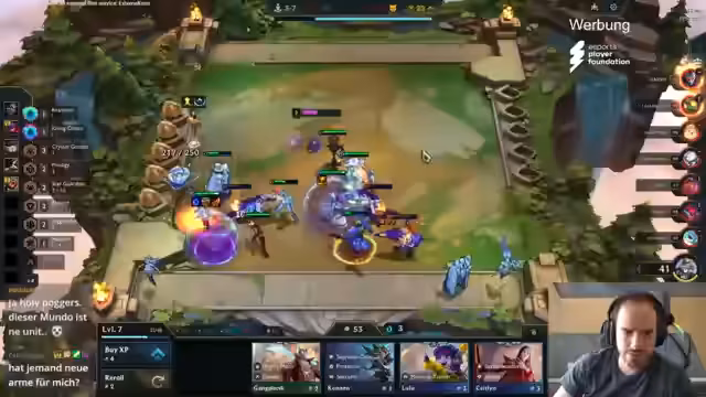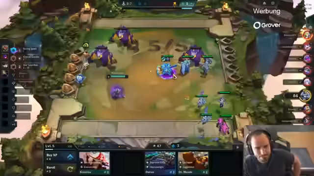 00:00:51Der Stream startet mit einem gut gelaunten Streamer, der sein verbessertes Mental feiert. Der Fokus liegt auf dem Spielstil "Crystal Gambit", der besonders in den letzten Tagen erfolgreich war. Der Streamer spielt mehrere Runden hintereinander Plätze eins und zwei, was ihm zuversichtlich stimmt und ihn zu dem Entschluss führt, "Crystal Gambit all day" zu spielen, um sein Skilllevel zu untermauern. Der Gameplan für die Anfangsrunden beinhaltet den Start mit Einheiten wie Koboku 2 und die Erwartung, mit dem Trait "Over 9000" die ersten Runden zu dominieren, indem man Einheiten früh slamt.