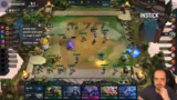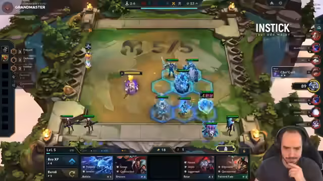 02:37:25Das Board wird als sehr stark beschrieben, was zu dem Entschluss führt, nicht mehr Catch-up zu spielen. Das Problem der fehlenden Magic Pen wird thematisiert und kurz darauf gelöst. Der Streamer entscheidet sich dafür, Fiddlesticks zu spielen, da dies vom Augment vorgesehen ist. Das Board-Management wird als sehr aufwendig beschrieben, da ständig Free Re-Rolls genutzt und Units umgestellt werden müssen. Das Ziel ist es, durch Rollen und Board-Spielen Cashouts zu erreichen und die Streak zu halten.