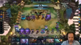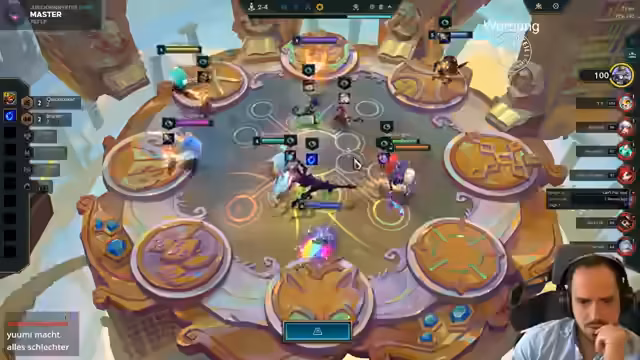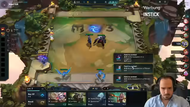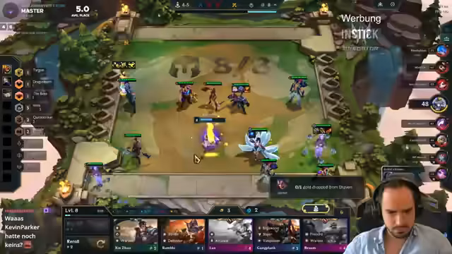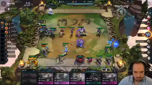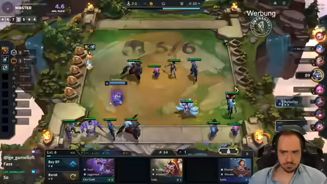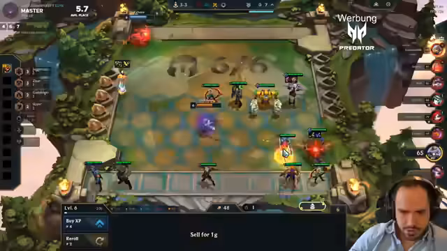 02:30:24Der Streamer passt sein Board an, indem er statt Kretz einen Archangel-Build spielt. Er scoutet die Lobby nach wichtigen Gegenständen und schaut, ob er spezielle Einheiten wie Melio oder Legion of Threes bekommen kann. Er plant, früh auf Level 7 zu gehen und nutzt seine Bonus-XP. Das Spiel verläuft holprig und er ist unzufrieden mit seiner Augment-Auswahl.
