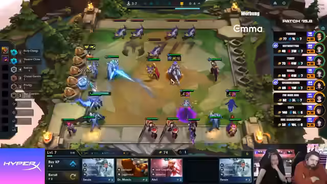 03:35:35Der Streamer bittet die Zuschauer, den Emma-Link zu nutzen, um ihn und seine Partnerschaft zu unterstützen, da dies weitere Möglichkeiten und Projekte wie das Bootcamp finanziert. Es treten technische Probleme auf, da der Client blinkt und der Cleanfeed kaputt ist, was zu Irritationen führt. Er hofft, dass die Probleme schnell behoben werden und der Cleanfeed in wenigen Minuten wieder läuft. Er lobt die Technik für ihre Bemühungen, den Stream am Laufen zu halten, und erwähnt, dass sie gleichzeitig an mehreren Problemen arbeiten, wie dem Cleanfeed und der Bereitstellung von zusätzlichen Headsets. Anschließend geht es zurück zu Spiel Nummer 4. Das Spiel startet, und es wird geprüft, ob alle Spectator im Spiel sind. Tomino hat 17 Punkte und braucht einen sechsten Platz, um 20 Punkte zu erreichen. Der 19-Punkte-Spieler spielt für Ruhm und einen Punktevorsprung. Es wird erwartet, dass dies der Aufbau für das große Spektakel ab Spiel 5 sein wird. Tomino hat 10 Gold gemacht und nur einen Säck aufgestellt, um einen Säck mehr zu generieren, was ihm einen kleinen Vorteil verschafft, obwohl er weniger Einheiten halten kann. Er hat jedoch drei Battle Academia Units sofort bereit, was das Problem der Synergien und Paare minimiert. Es wird experimentiert, ob Garen casten kann, was leider nicht der Fall ist.